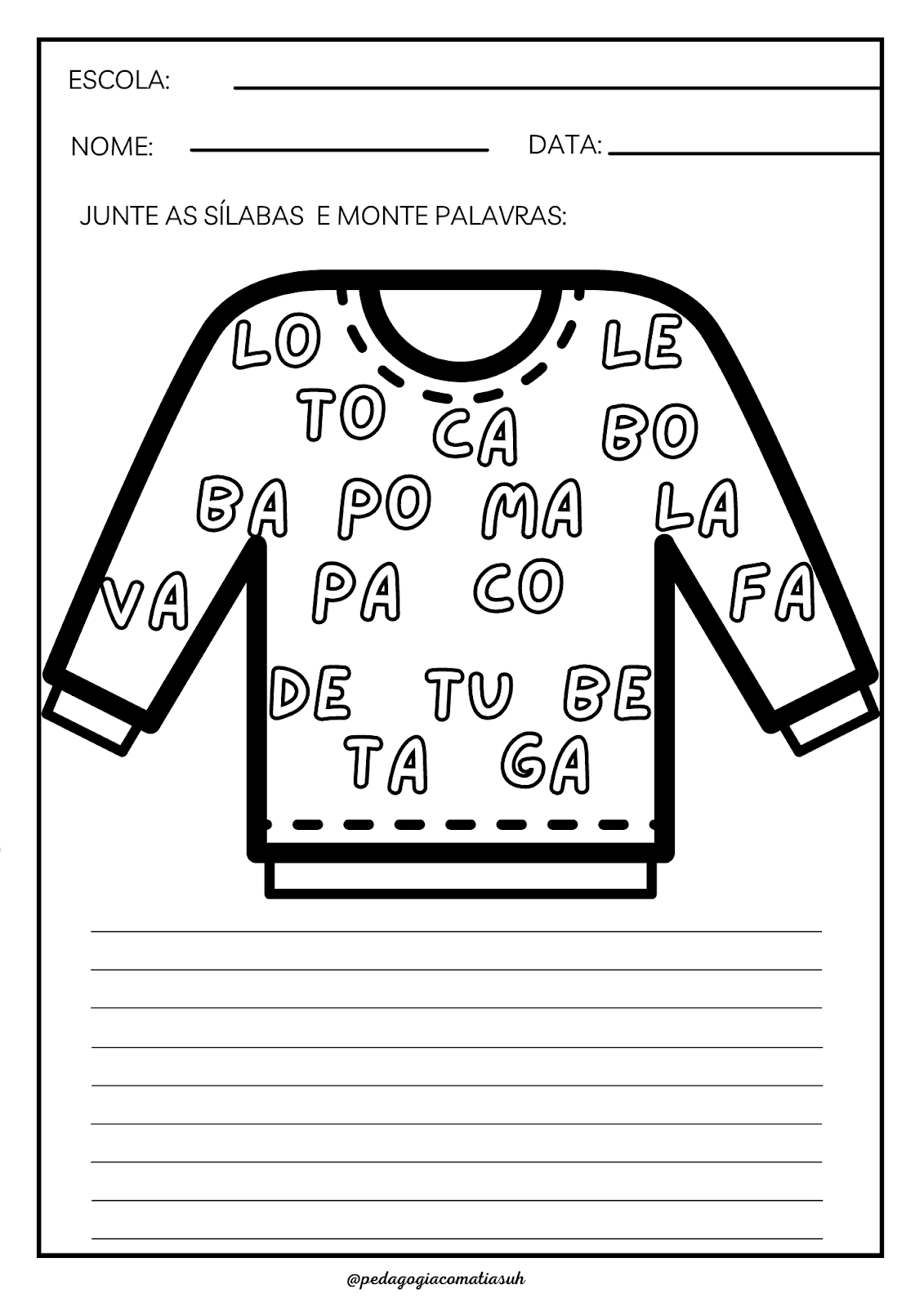 Hoje trago para vocês uma sequência de atividades educacionais muito interessante para alunos em fase silábico alfabética e fase alfabética.